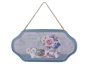 Plechová konvička s motivem lučních květin v barevném provedení 300x115x145mm