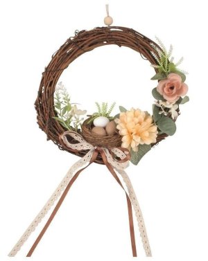 Věnec s dekoracemi a hnízdem 20 cm, hnědá stuha
