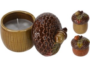 Svíčka ve skle s víkem ve tvaru dýně, vonná, ve více barevných variantách.