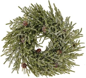 Borovicový věnecStylový borovicový věnec z kvalitních PE a PP materiálů působí přirozeným dojmem a je ideální pro sváteční výzdobu.