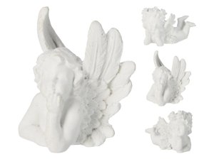 Jemný ležící andílek z bílého polyresinu – krásná dekorace pro zklidnění domova.