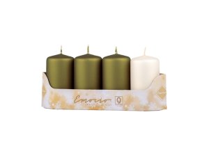 Sada čtyř válcových svíček Emocio o rozměru 40×75 mm v metalicky matném provedení.