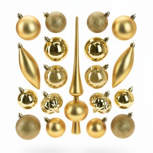Obsah sady: 1 ks matná špička na stromek (28 cm) 2 ks lesklé cibulky (6 cm) 2 ks matné rampouchy (12 cm) 8 ks hladkých koulí (6 cm): 2 ks lesklé, 2 ks matné, 2 ks s třpytkami, 2 ks perleťové 6 ks hladkých …