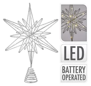 LED špička hvězda, 20 LED diod, výška 33 cm, barva stříbrná, jemné teplé osvětlení, snadné upevnění.