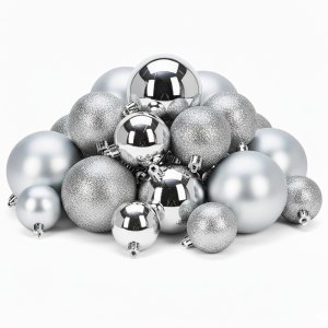 Vánoční ozdoby - kouleKs v balení 26Materiál: plastBarva: stříbrná lesklá/matná/zářiváRozměr: 60/80 mmBaňky na Vánoční stromeček.
