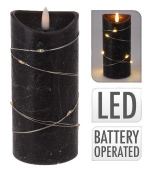 Svíčka LED pr. 7 x 15 cm 1LED / 10LED, ČER. průměr: 7 cm výška: 15 cm barva: černá LED svíčka válcovitého tvaru (1LED) dekorativní LED stříbrný drátek (10LED) 2 x AAA baterie, nejsou součástí Svíčka …