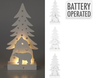 Dekorace závěsná STROM S MEDVĚDEM 6LED, 34 cm, dřev.
