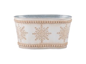 Oválný plechový květináč Vločka – elegantní bílá a krémová barva, dekorativní i praktický.