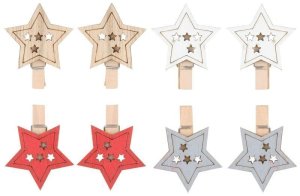 komponenty ke zdobení Hvězda dřevěná na kolíčku 4,5 cm 8 ks