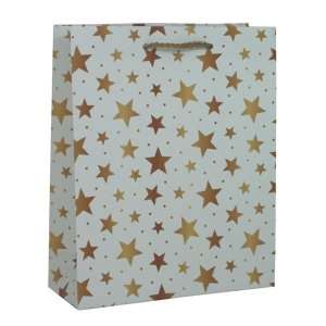 Bílá vánoční taška s motivem zlatých hvězd Rozměr: 26 x 32 x 10 cm
