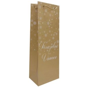 Zlatá dárková taška s bílým nápisem Kouzelné Vánoce Rozměr: 35 x 12 x 9 cm