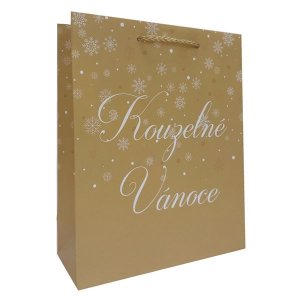 Zlatá dárková taška s bílým nápisem Kouzelné Vánoce Rozměr: 44 x 32 x 10 cm
