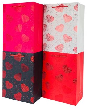 Taška dárková 40 x 30 x 12 cm, SRDCE, mix dekorů. rozměry: 40 x 30 x 12 cm materiál: papír mix 4 dekory Dárková taška s motivem SRDCE.