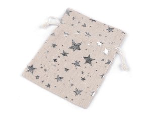 Dárkový pytlík s metalickým potiskem hvězd poslouží na zabalení malých dárků, např. kosmetiky.
