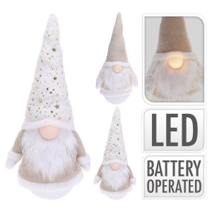Dekorace SKŘÍTEK 43 cm, LED, mix. 1xLED dioda v nose výška: 43 cm materiál: textil, betonová báze, pěnový syntetický materiál, plast, písek mix baev: bílá / krémová čepice, krémová / bílá čepice baterie: …