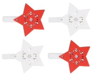 komponenty ke zdobení Hvězda dřevěná na kolíčku 4,5 cm, červená a bílá, 4 ks