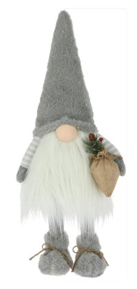 Dekorace LED SKŘÍTEK STOJÍCÍ 65 cm, BÍ/ŠE mix. výška: 65 cm mix barev: bílá, šedá 1 x CR2032 baterie, je součástí Veselá postava zachumlaného zimního skřítka jistě vykouzlí úsměv u dětí i dospělých.