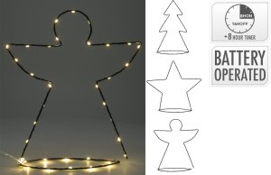 Osvětlení FIGURKA 34 cm, 40LED, s časovačem, mix. výška: 34 cm mix dekorů: hvězda, anděl, strom osvětlení: 40LED včetně časovače baterie 3 x AA, nejsou součástí Dekorativní osvětlení navodí příjemnou …