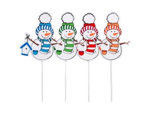 Pletený dřevěný zápich 65 mm se špejlí – sněhulák, mix barev.