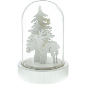 Vánoční skleněná kopulka s dřevěným dekorem 1 LED Barva světla: teplá bílá Rozměry: 5,5 x 5,5 x 9 cm Vhodné pouze pro vnitřní použití (IP 20) Napájení: 1x CR2032 Baterie jsou součástí balení