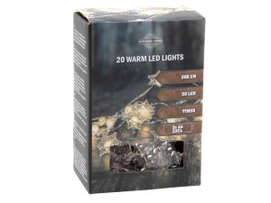 Girlanda s nano řetězem a přírodní bílou dekorací 10LED Délka osvětleného kabelu: 2,2 m Délka přívodní šňůry: 0,3 m Typ baterií: 3 x AA Barva světla: teplá bílá Pouze pro vnitřní použití Krytí: IP 20 …