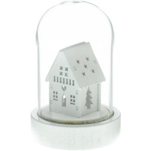 Vánoční skleněná kopulka s dřevěným dekorem 1 LED Barva světla: teplá bílá Rozměry: 55 x 55 x 90 mm Vhodné pouze pro vnitřní použití (IP 20) Napájení: 1xCR2032 Baterie jsou součástí balení
