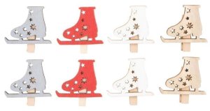 Dřevěné kolíčky s vánočním potiskem vám pomůžou stylově ozdobit dárky, dárkové tašky nebo květináče a květinové vazby.
