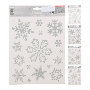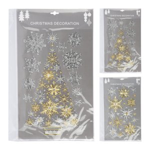 Samolepky VÁNOČNÍ 41 x 29 cm, mix. rozměry: 41 x 29 cm mix dekorů: sněhové vločky, vánoční stromek s vločkami Metalické samolepky na okno navodí tu pravou slavnostní atmosféru.