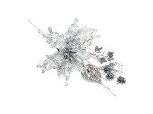 Zápich větvička 380 mm zasněžená, smrk s růží mix