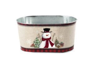 Sada 3 oválných plechových květináčů Sněhulák – barevný motiv pro zimní dekorace, praktický i dekorativní.