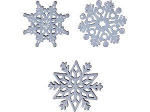 Malé filcové vločky zdobí z jedné strany třpytivé glitry.