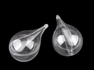 Průhledné plastové objekty se skládají ze dvou dílů, které lze spojit a pomocí očka zavěsit jako dekoraci.
