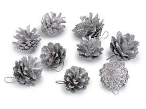 Dekorační šišky můžete díky poutku pověsit na stromeček, věnce nebo větvičky ve váze.