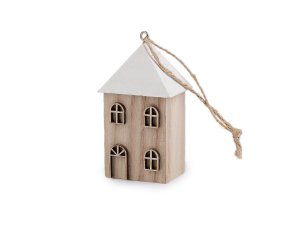 Malý dřevěný domeček můžete díky poutku zavěsit na stromeček, dekorační věnce, větvičky ve váze apod.