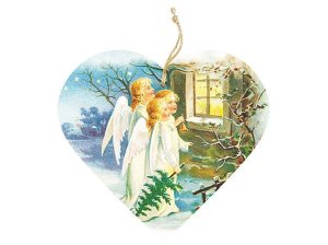 Dřevěné vánoční dekorace ve tvaru hvězdy, srdce a stromku mají malovaný povrch.