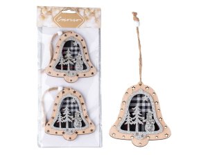 Dřevěná vánoční ozdoba v podobě dvou zvonků, umístěných v kruhu.