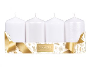 Sada glitrovaných adventních svíček válcovitého tvaru se špičatou hlavou.