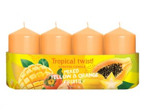 Sada adventních svíček válcového tvaru se špičatou hlavou.