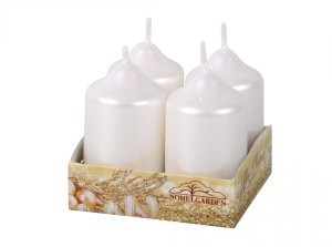 Svíčka adventní 60 x 40 mm, BÍ (4 ks). průměr: 3,8 cm výška: 6 cm barva: bílá balení: 4 ks doba hoření: 7 hodin / 1 svíčka Vysoká kvalita parafinu zaručuje vyhoření a nestékání svíčky.