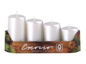 Adventní svíčky s rovnou hlavou v lesklém a hladkém metalickém provedení.