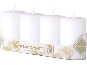 Sada adventních stupňovitých svíček ve tvaru válce, se špičatou hlavou.
