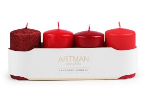 Svíčka adventní 60 x 40 mm, ČRV (4 ks). průměr: 3,8 cm výška: 6 cm barva: červená balení: 4 ks doba hoření: 7 hodin / 1 svíčka Vysoká kvalita parafinu zaručuje vyhoření a nestékání svíčky.