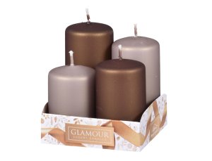 Adventní stupňovité svíčky, matně metalické, s plochou hlavou.