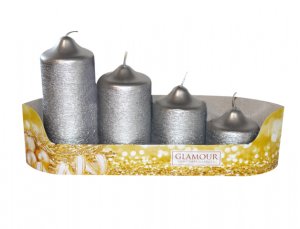Stříbrná lesklá adventní svíčka ve tvaru válce.