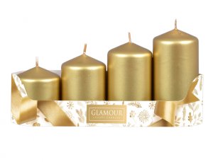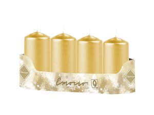 Svíčka adventní 60 x 40 mm, ZLA metalická lesklá (4 ks). průměr: 3,8 cm výška: 6 cm barva: metalická zlatá, lesklá balení: 4 ks doba hoření: 7 hodin / 1 svíčka Vysoká kvalita parafinu zaručuje vyhoření …