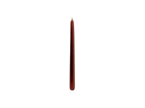 Stolní svíčka kónická. Její povrch je hladký v úpravě metalický mat.
