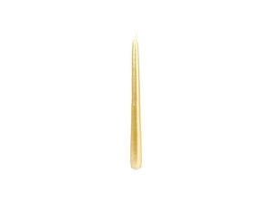 Stolní svíčka kónického tvaru, hladká, hladká, metalická, lesklá.