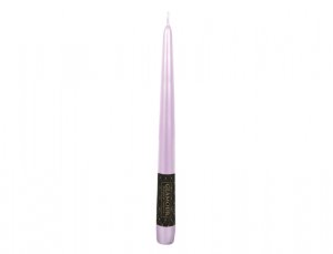 Stolní svíčka kónického tvaru, hladká, metalická, perleťová.