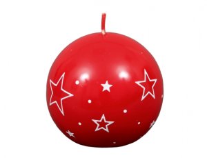 Lesklá červená svíčka ve tvaru koule.