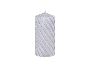 Vánoční svíčka ve tvaru válce s glitrovaným povrchem.